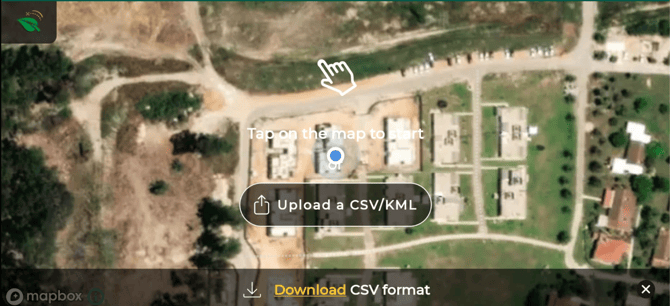 Tap on the map to mark linear points. The drone will fly the path and capture images along the way.